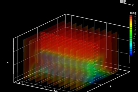 2D3C PIV在使用传统二维PIV 系统的光片上,添加第二台相机,专用相机支架和标定板,即可用来测量光板平面中的三维速度分量。因为能够轻松地进行高空间分辨率、高精度的测量,所以被称为最实用的同时多点三维测量法。